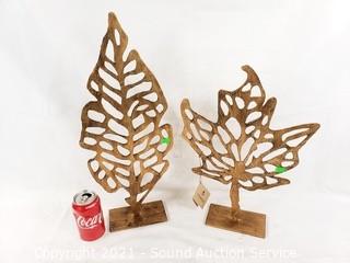 Lot #0231: 2 Uttermost Handcrafted Metal Art Leaf Sculptures