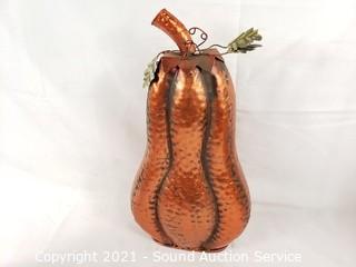 Lot Details: 12" x 17" and 17" x 9" metal pumpkins, 13" x 3" bottles.