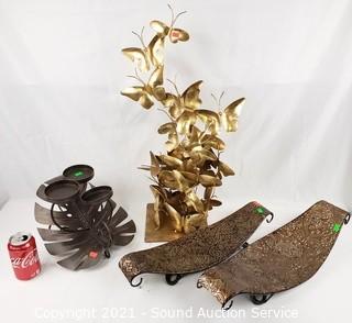 Lot #0332: Candelabra, Candle Trays & Metal Art Butterfly