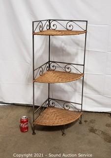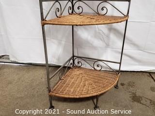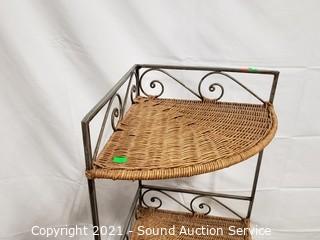 Lot #0063: Distressed Finish Metal Base Woven Corner Shelf