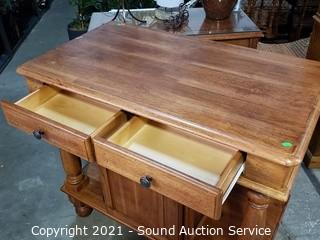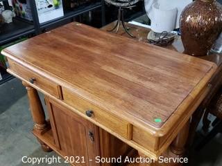 Lot #0004: Oak? Double Sided Pass-Through Console Table