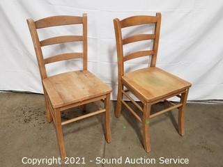 Lot #0072: Pair of Natural Finish Maple Ladder Back Chairs