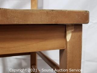 Lot Details: Some wear to the finish, one chair has some slight damage to the front leg, refer to photos. 35" x 16", 18" to seat.