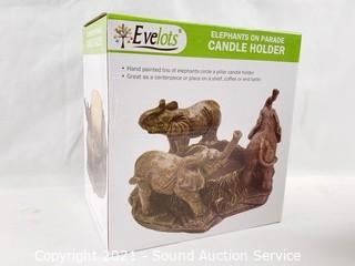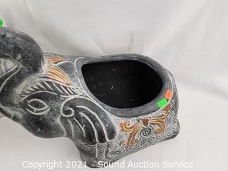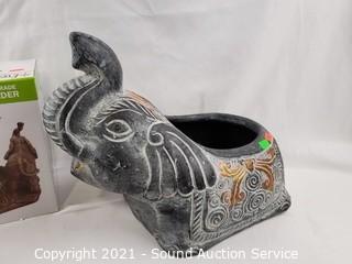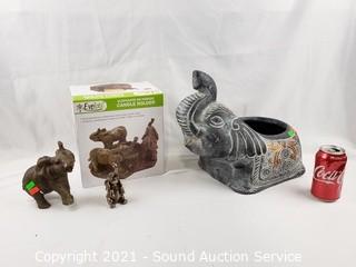 Lot #0317: Pottery Elephant Planter, Figures & Candle Holder
