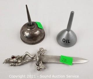 Lot #0239: Ceramic Tin Man, Pewter Letter Opener & More