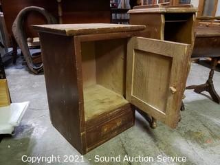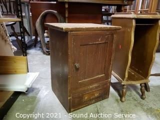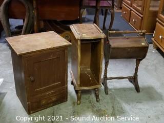 Lot #0407: 2 Vtg. Side Tables & Sewing Box