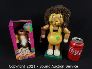 Lot #0245: 2 Wizard of Oz Wood Cowardly Lion Nutcrackers