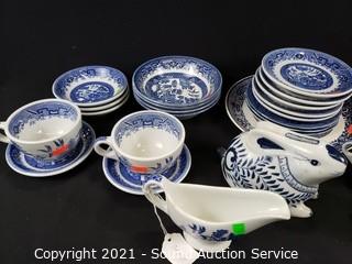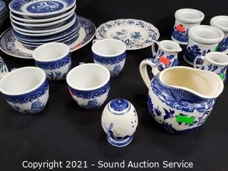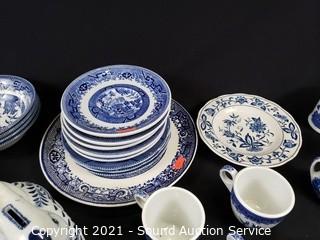Lot #0268: 34pc Oriental Blue Castle Print China
