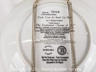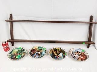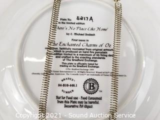 Lot Details: By Bradford Exchange, refer to photo for plate information. Each have a glued charm on the plate. One plate's charm has come unglued. Display is 41" H x 53" W x 2.5" D.