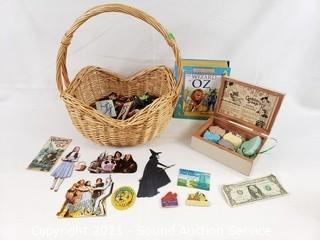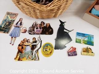 Lot #0262: Basket w/Wizard of Oz Collectibles
