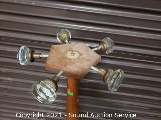Lot Details: 64" H x 16" Base coat rack, 14" H x 20" W x 3.5" plate rack, 10 prong mug rack. Coat rack is splitting on the bottom and doesn't stand up straight.