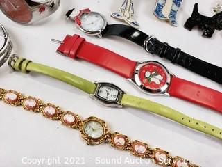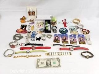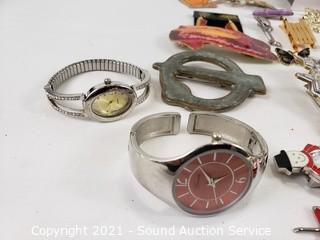 Lot #0375: Fashion Jewelry, Pins, Earrings & Watches