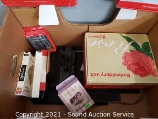 Lot Details: Comes with pattern software, VHS tapes, Quilters Kit II, Mega Hoop, Endless Embroidery Hoop & more. Refer to photos.