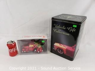 Lot #0260: Mercury Glass Truck Ornament & Vehicle Tin