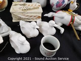 Lot Details: Vases, napkin rings, bird figures, trinket box is resin.