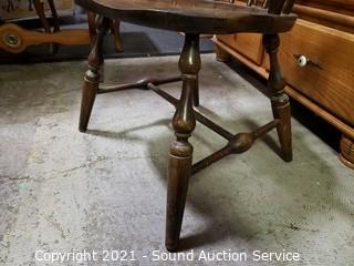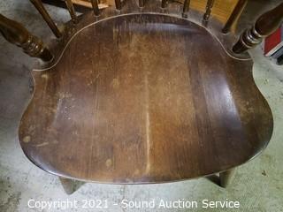 Lot Details: One of the spindles is broke, various wear to the finish. Refer to photos. 35" H x 24" W x 17" to seat.
