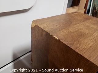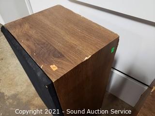 Lot Details: Both work but subs surround has deteriorated, refer to photos. Some damage to the finish, 26" x 13.5" x 11".