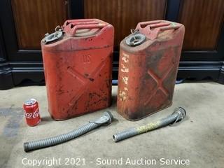 Lot #0079: 2 Pairs of US Steel 5 Gal. Gas Cans w/Spouts