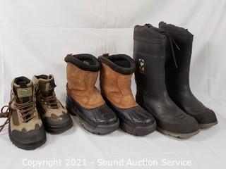Lot Details: Size 8, 10 and 11. Various conditions, refer to photos. Brands include Sorel, Bass, White River, Chinook, Quabaug and Whites.