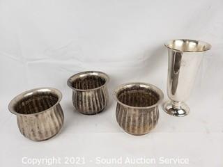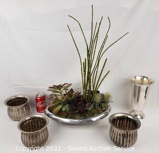 Lot #0141: Faux Arrangement w/Silverplate Planters & Vase