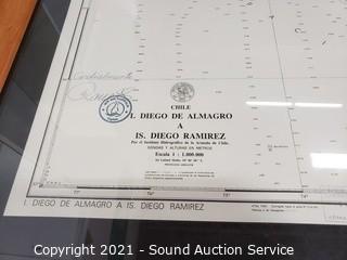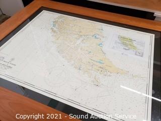 Lot #0012: Wood Glass Top Table w/Map of Chile