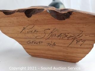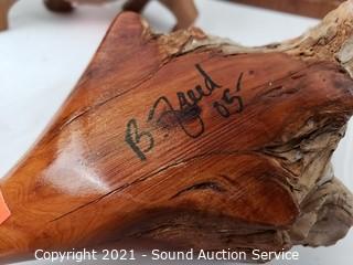 Lot Details: Smallest is 2" x 3", largest is 15" x 5.5". Carved driftwood duck is signed "B. Freed", refer to photos for signature on the bluebird.