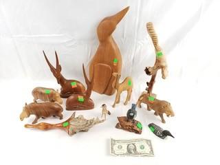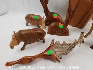 Lot #0396: 12pc Carved Wood Animal Sculptures