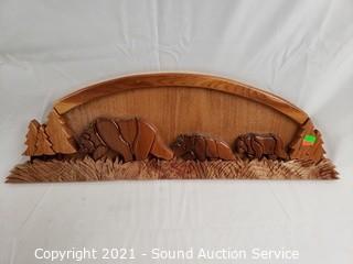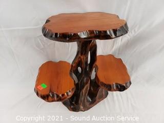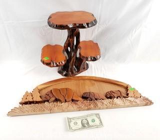 Lot #0427: 3-Tier Carved Wood Plant Stand & Wood Art Bear