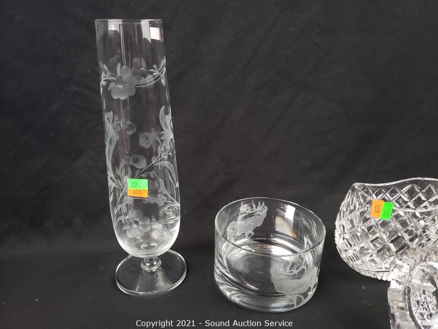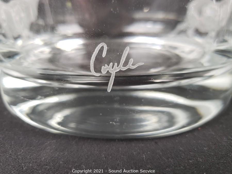 Lot Details: 2 pieces are Waterford, refer to photos for signatures, another is West Germany, one is etched with elks signed "Coyle". Smallest piece is approx. 3" x 4.5", largest is 3.25" x 9".
