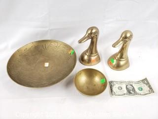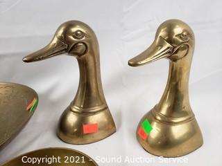 Lot #0455: Brass Etched Bowls & Duck Book Ends