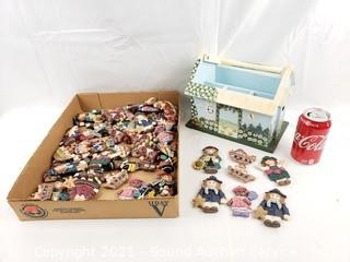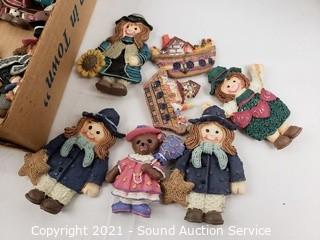 Lot Details: Doll and bear magnets, 8" x 7" x 9" organizer.