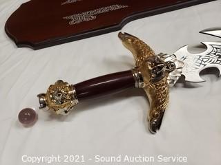 Lot Details: Sphere on the hilt has come free. Comes with display. 37" long overall, 26" blade.