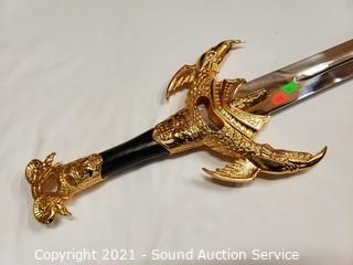 Lot #0449: Gold Dragon Head Decorative Fantasy Sword