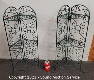 Lot #0419: Pair of Folding 3-Tier Metal Corner Shelves