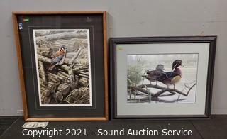 Lot #0333: Pair of Signed Original? & Litho Bird Artwork