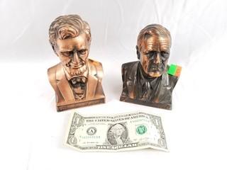 Lot #0375: Presidential Roosevelt & Lincoln Bust Coin Banks