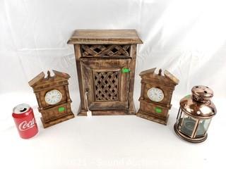 Lot #0439: Quartz Mantle Clocks, Candle Lantern & Key Box