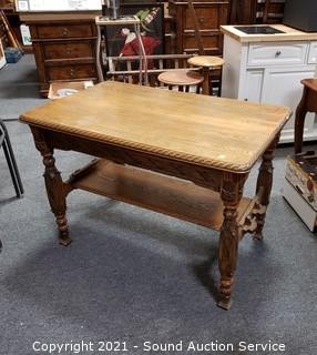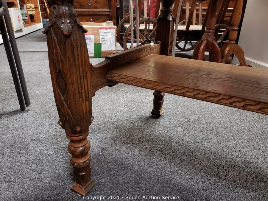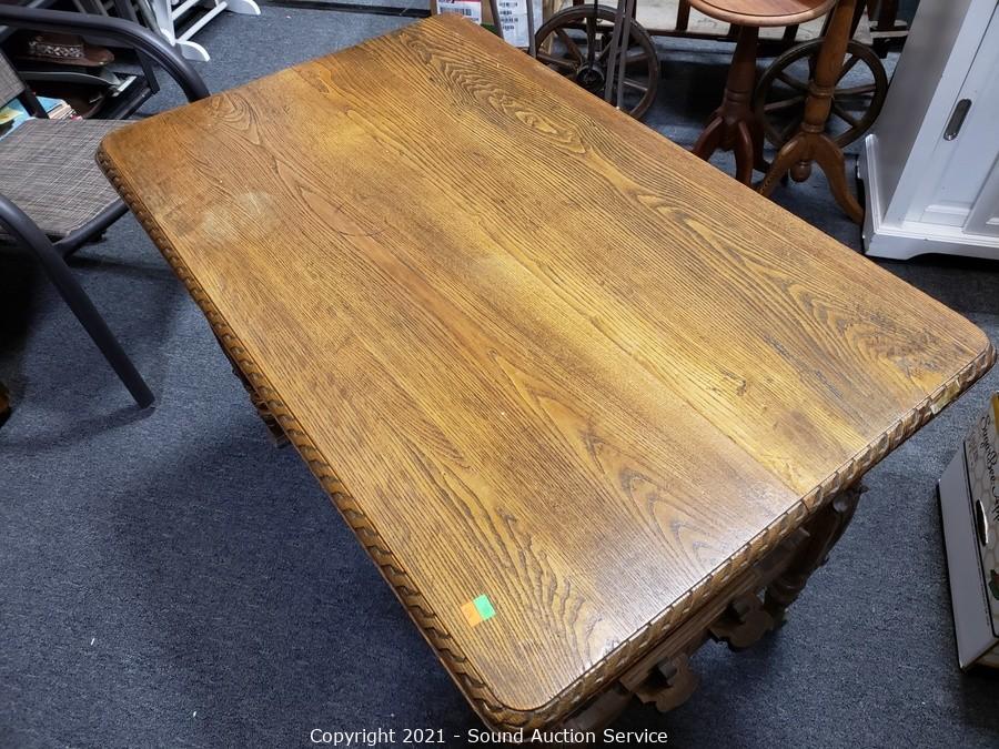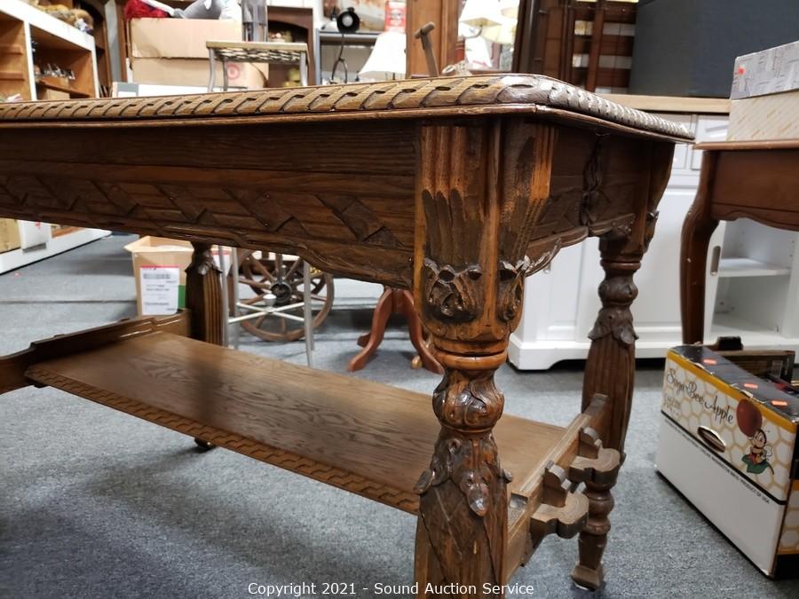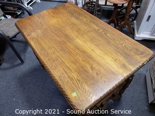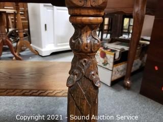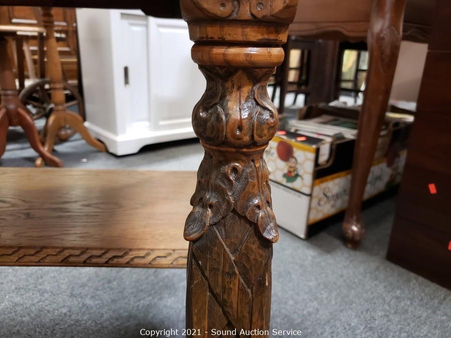 Lot #0109: Vintage Carved Oak Refectory Table