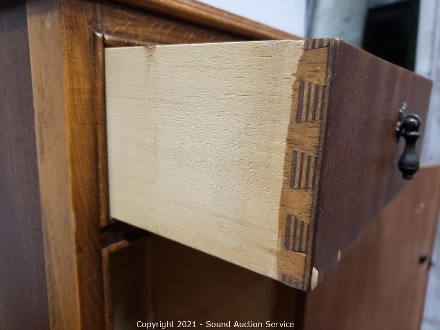 Lot Details: 26" x 14" x 13.5". Some wear, refer to photos. Dovetail joinery
