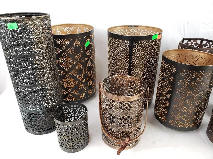 Lot #0143: 13 Pierced Metal Candleholders