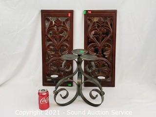 Lot #0164: 2 Wall Hanging & 1 Centerpiece Candleholders