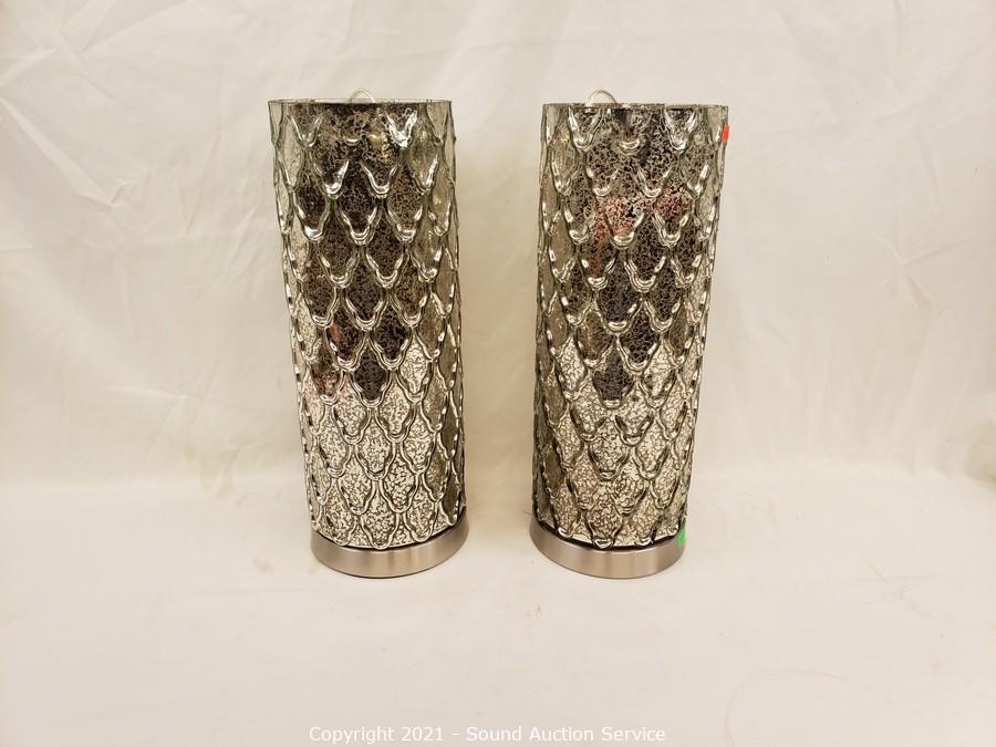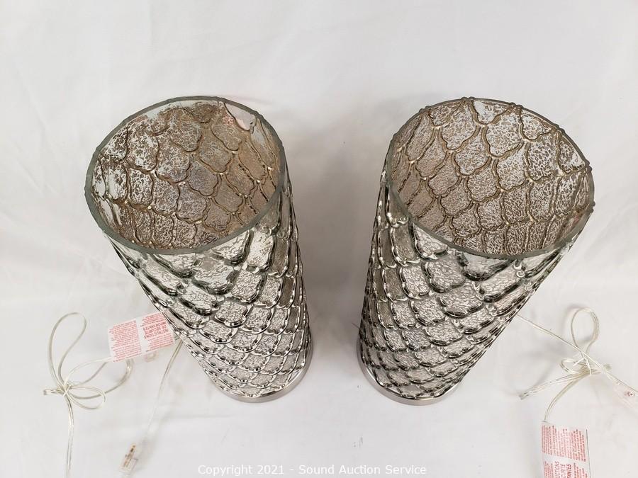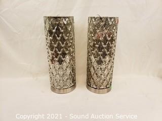 Lot #0169: 3 Decorative Silver-Tone Column Lamps