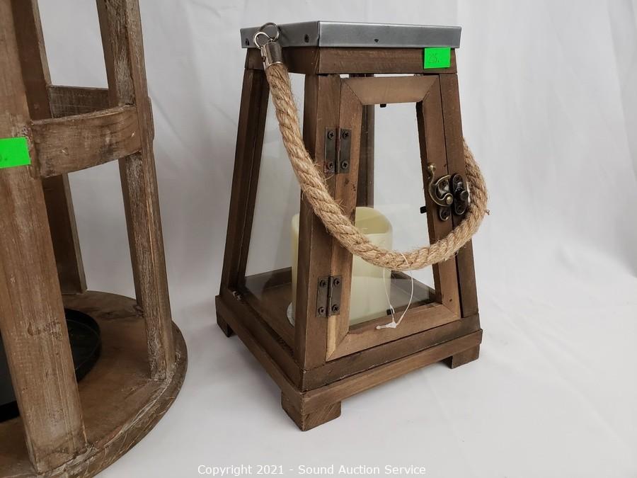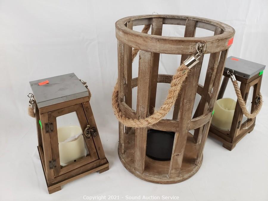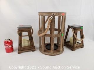 Lot #0205: 3 Wood Candle Lanterns