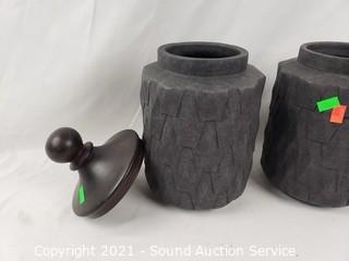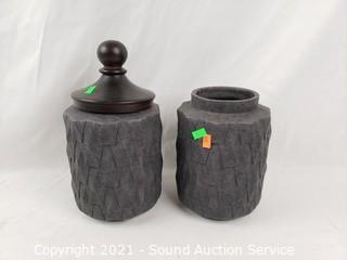Lot Details: Vases are approx 8" T x 5.5" diameter, canisters are 8.25" to 12" tall x 5" to 7".