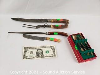 Lot #0159: Antler Handle Cutlery & 3pc Hindu Utensils