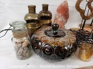 400+ lots including; Tons of like new interior accent décor; Candleholders, Candle Lamp/Lanterns, LED & Wax Candles, Faux Houseplant Décor, Ceramic Egg Smoker/Grill, Area Rugs, Henkel-Harris Mahogany Claw Foot Dining Set, Poulan Pro 42" Riding Lawn Mower w/Grass Catch, Nice Ethan Allen Teal & Burgundy Accent Sofa, Charles R. Walter Cabriole Leg Piano, Mahogany Dresser & Vanity, Military Fatigues, Silk Ties, Powered Subwoofer, Steam Cleaner, Various Artwork, Jewelry Displays, Longaberger Baskets, Bose Wave Music System, Wedding Dresses, Lenox Fine china Dish Set, Carl Zeiss Jenna Microscope & Much More!!!