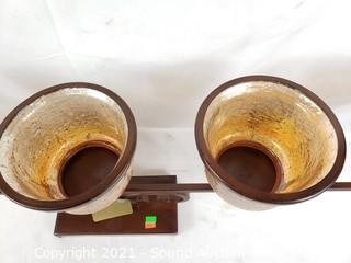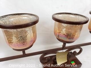 Lot Details: Some peeling of the finish on one of the candleholders, refer to photos. 13" x 40" x 6" overall.