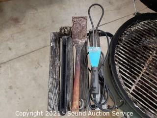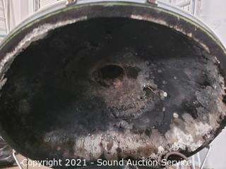Lot Details: Needs a good cleaning, otherwise in great condition. Comes with new grill cover, VHS tape and grill utensils. Overall with rolling stand 47" H x 24" diameter with (2) 12" x 16" side tables.