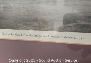 Lot Details: Black and white photo from 1932 of the Golden Gate before the bridge, San Francisco, California, 20.5" x 16.5" and Lawson Woods "9 Pints of the Law" bobbies print, 16.5" x 28". Both framed and matted with glass.