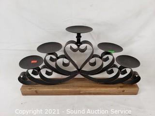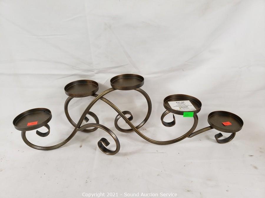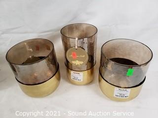 Lot Details: Hurricanes are made in India, glass and brass materials, 6" x 5" and 8" x 4". Candelabras are 7" x 21" and 12" x 20".